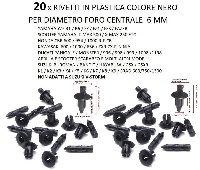 20 Unità di Rivetti in plastica a sgancio rapido