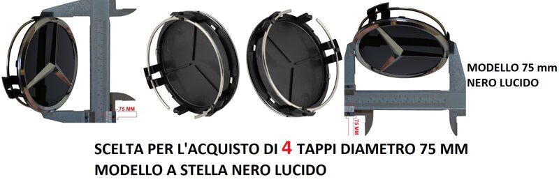 4 TAPPI COPRIMOZZO 75 MM PER CERCHI IN LEGA MERCEDES BENZ CLASSE A B E CLA CLK ML